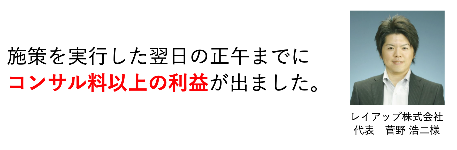 結論から言いますと、施策を実行した翌日の正午までにコンサル料以上の利益が出ました。